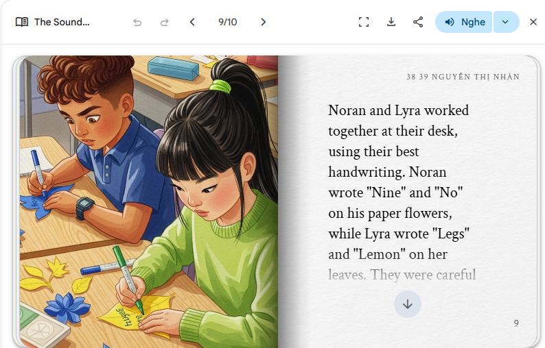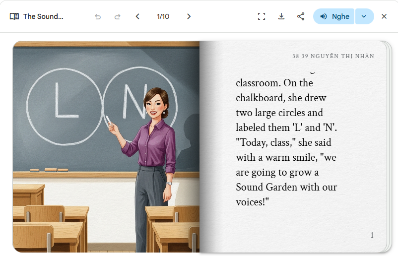 Để hỗ trợ các em luyện tập một cách tự nhiên và hứng thú, các giáo viên Tiếng Anh đã thiết kế những storybook (sách truyện ngắn) với nội dung gần gũi, hình ảnh sinh động, lồng ghép các từ vựng quen thuộc trong chương trình học. Thông qua việc nghe và đọc các câu chuyện này, học sinh không chỉ được củng cố vốn từ mà còn có cơ hội luyện phát âm các âm /l/ và /n/ một cách thường xuyên, từ đó hình thành phản xạ ngôn ngữ tốt hơn.