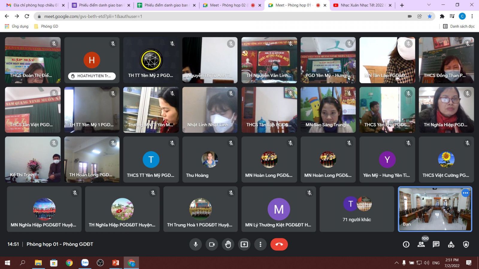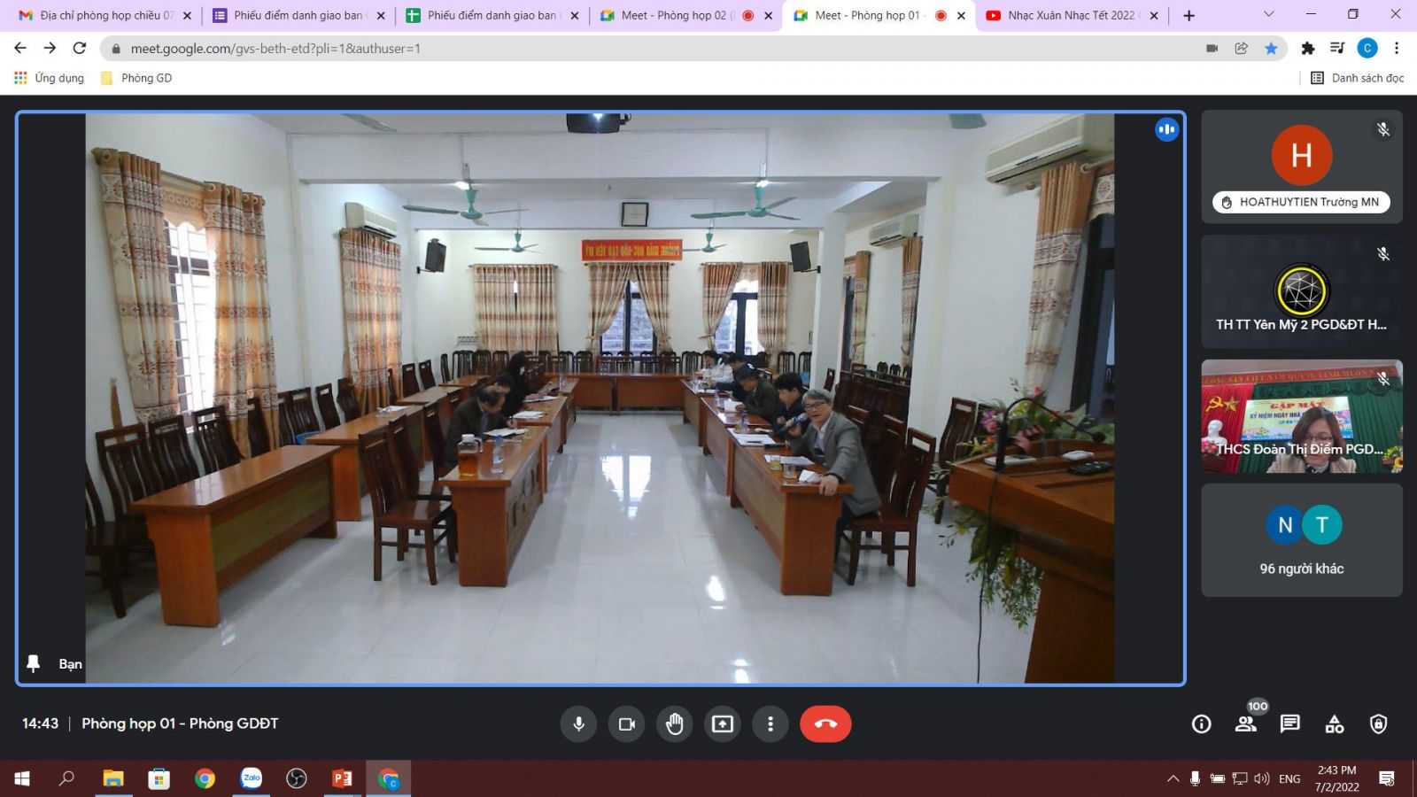 Nhằm chuẩn bị các điều kiện về cơ sở vật chất và các phương án để tổ chức dạy học trực tiếp đảm bảo an toàn, phòng, chống dịch Covid-19 tại các cơ sở giáo dục từ ngày 14/2/2022, Phòng GD&ĐT Yên Mỹ và Sở GD&ĐT Hưng Yên tổ chức Hội nghị trực tuyến ngày 07 và 08 tháng 02 năm 2022.